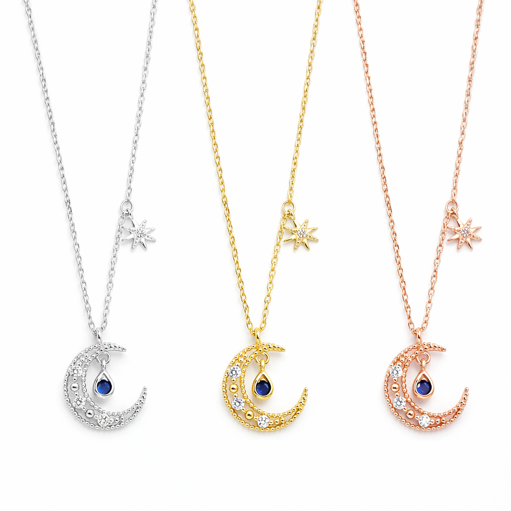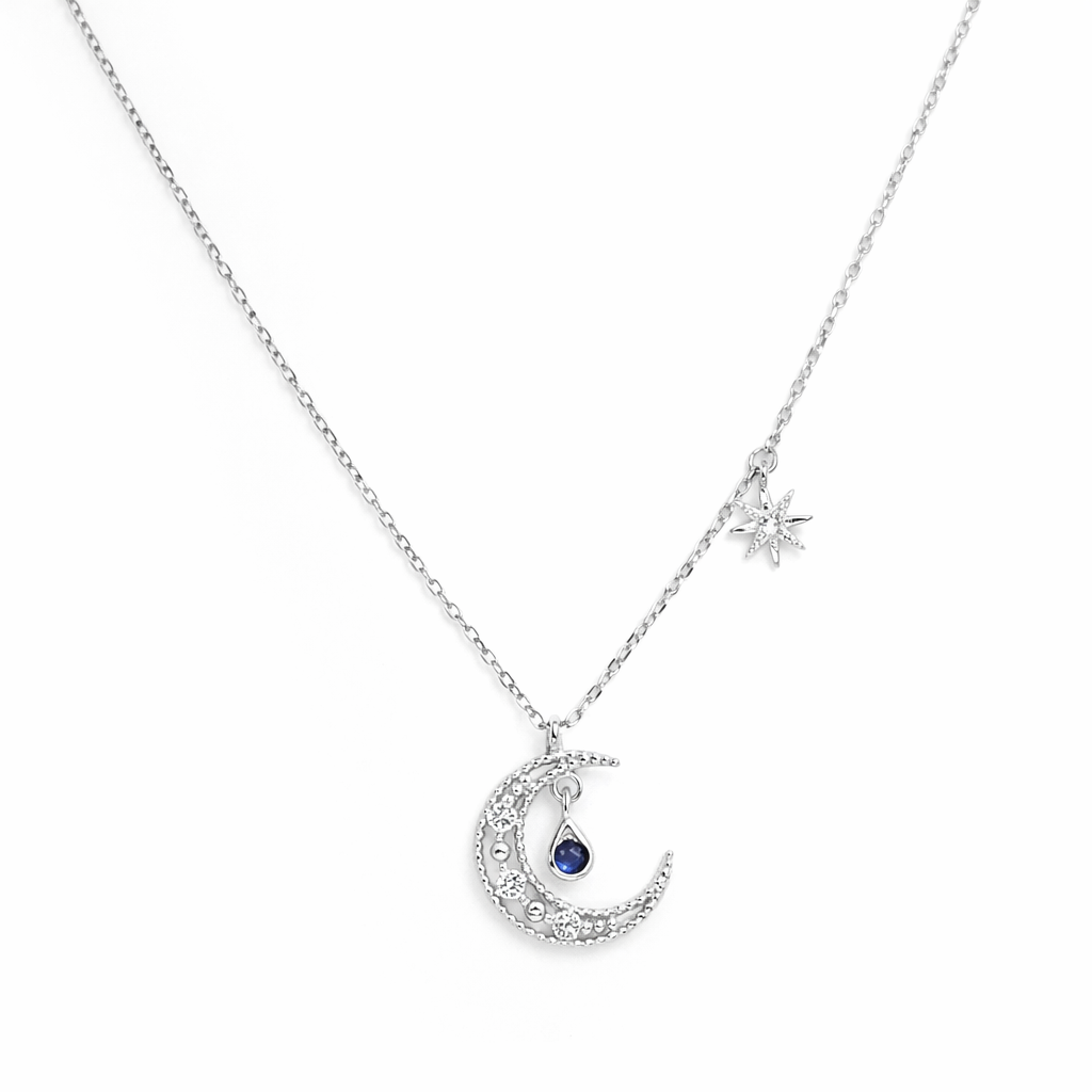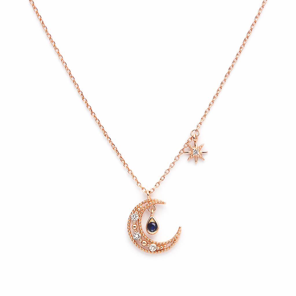 Delicate crescent moon with rhinestone droplet